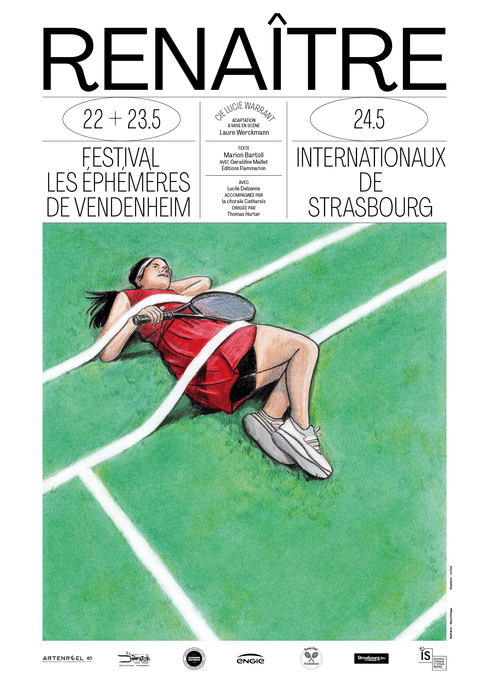 Visuel pour la piece de théâtre Renaître mise en scène par Laure Werckmann et adaptée du roman éponyme de Geraldine Maillet et Marion Bartolo.